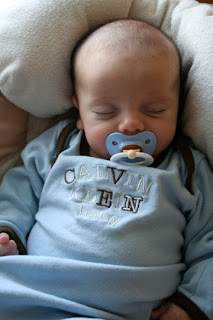 Elias has been sleeping for 5-7 hours straight for a few weeks now, with most nights me getting up at 4 am for a feeding. Well, for the past two nights he has slept through the night entirely! Last night he slept from 9-5 and the night before he slept from 10:15-6:15. YEA for eight hours of sleep. Now, if I could just get to bed close to the time that he does. Then, after he wakes up and eats, he goes right back to sleep, and I usually put him in his swing, where he will sleep until about 8ish (see picture below).