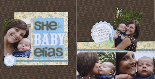 Awe,poor little Elias!That first cold is horrible.It is so hard to see your children sick.My 3 month old hasn’t been sick yet but when my three year old got colds when she was a baby I would use saline spray and an aspirator and I would also give her Tylenol regardless of whether or not she had a fever.I know when I have a cold Tylenol makes me feel better so I think it helps a baby feel better.Also lots of cuddletime.And I have to say I LOVE your handwritting.You are a very talented “scrapper”.I would love to do it but it intimidates me.Good luck with Southwest.I’m rootin’ for ya!