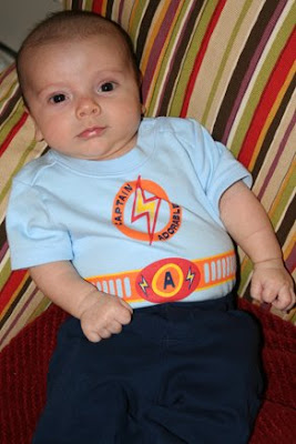 Before I start talking scrapbooking, can I just share this photo of Elias in his Captain Adorable onesie? Adorable is definitely the right word for this one. SO CUTE!