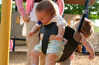 On Thursday when I got to day care, Elias and one of the little girls were the last two babies there. The girl watching them took them outside to swing. She put them in the baby swing back to back and the two of them quickly fell asleep against each other. It was SO cute. I think it is hilarious how Elias’s shirt got pulled up in the swing and his belly is hanging out. Sweet baby boy.