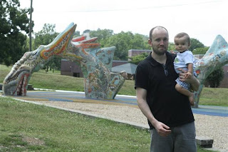 We had the party at Dragon Park in Nashville. It is known as Dragon Park because of the huge tiled dragon at the park. Isn’t it neat? I love that Matthew and Elias are making the same face in this photo.