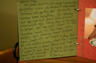 December 4- Elias and I at bedtime. The chipboard says ‘silent night’. On the back I designed a tree using a strip of words that I had. I love how it turned out. The embellished it with stickles glitter.