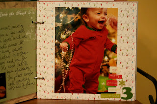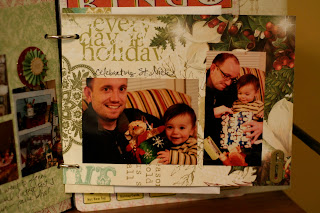 I have been working diligently on my December Daily all month. It has been such a rewarding experience and I LOVE how my album is coming together. I page through it several times a day because it just tickles me to see all the different size pages, the pictures, the textures, etc. I have my scrapbooking tote and little rubbermaid of Christmas embellishments sitting on our coffee table (away from Elias’s reach) and I work on a page every night- or two pages in a night if I have missed a couple days. Today I am going to share the first half of my album and tomorrow I will share the rest. These are going to be photo heavy posts, but I hope they inspire you.