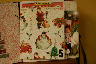 December 5 – Vintagefest- I like how the front of this page is just vintage santas. The only thing I added was the number and the glitter tree.