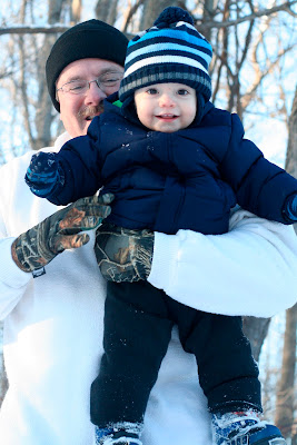 He loves his Daddy. And yes, he has socks on his hands because I left his mittens in Nashville. At least they were fleece socks.