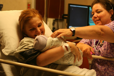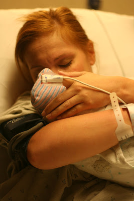 I just wanted to quickly post that Angie had Charlotte tonight. She was born around 10:30 and weighed 5 lbs, 13 oz and is 19 inches long. She has strawberry blondish/red hair and is adorable!