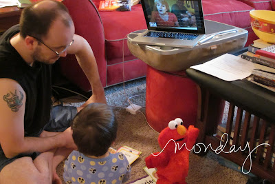Wednesday, June 16- Today, the giant Elmo I ordered for Elias’s birthday party arrived. Elias was so excited that he requested Elmo eat dinner next to him. We obliged. 🙂