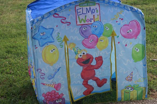 One of Elias’s birthday presents was a little Elmo house (here’s a different Sesame Street playtent), so we set that up and the kids had fun going in and out of it.