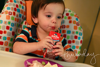 Thursday, July 22- Elias had chocolate milk at dinner tonight. He thought he was hot stuff.