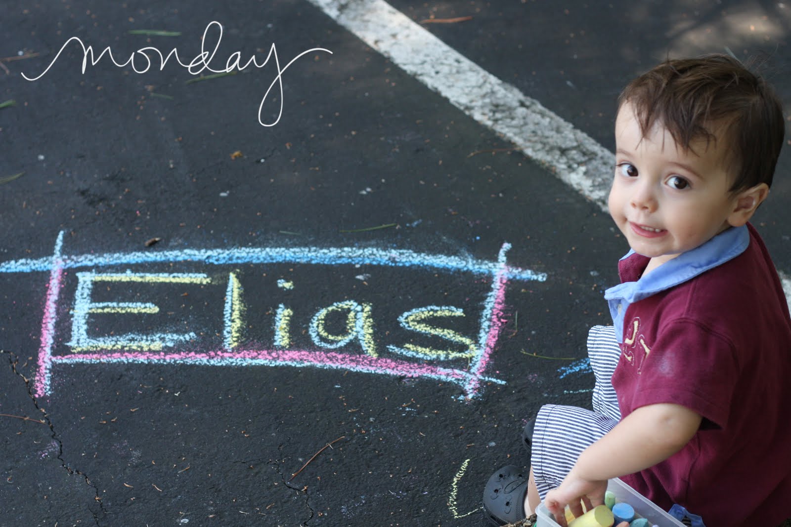 Monday, August 23: Elias’s day care is closed this week, so he had fun with Daddy today. I love this shot Matthew took during sidewalk chalking. Elias is clearly saying “cheese” in the picture.