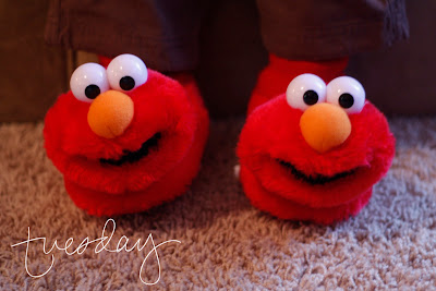 Tuesday, January 4: Our condo is a bit drafty, so Elias has been rockin his Elmo slippers in the morning! I think I love them as much as he does.